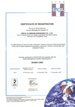允大鋁業(深圳)有限公司于1999年9月份通過ISO9001認證,材質的選用完全覆核美國材料試驗協會(A.S.T.M),日本工業標準規格(J.I.S),我公司不斷的進步及追求卓越品質車間每一個單位之製程完全依照標準化之參數執行,使其產品之再現性達到控制故品質完全滿足客戶100%要求.